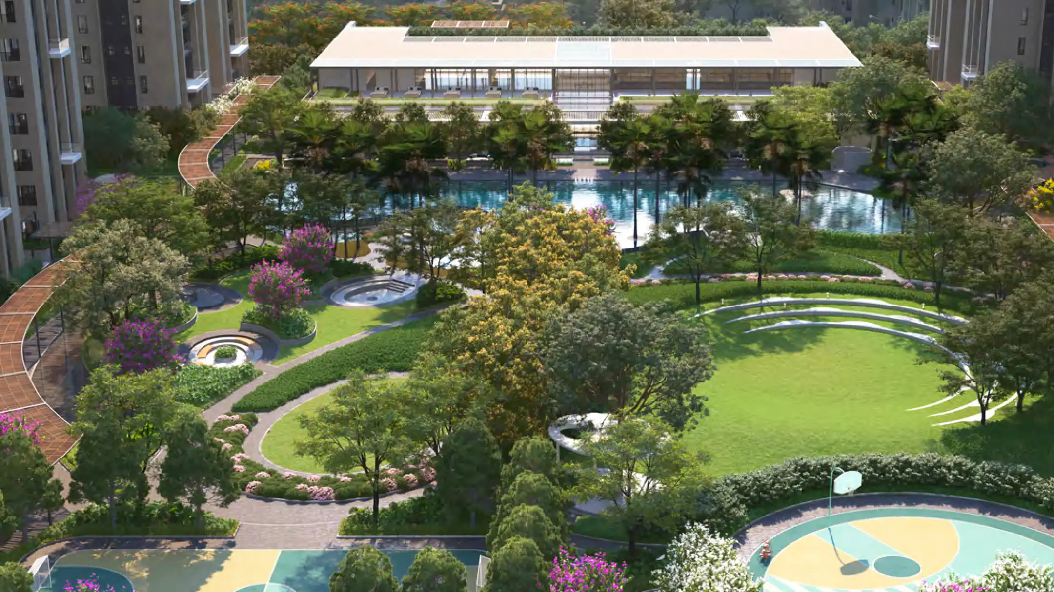 Enjoy 70+ world-class amenities at Ambuja Utpalaa, including an infinity pool, aqua gym, rooftop cabanas, gymnasium, yoga deck, coworking space, banquet halls, kids’ play zones, jogging track, gardens, theatre, sports courts & more!
