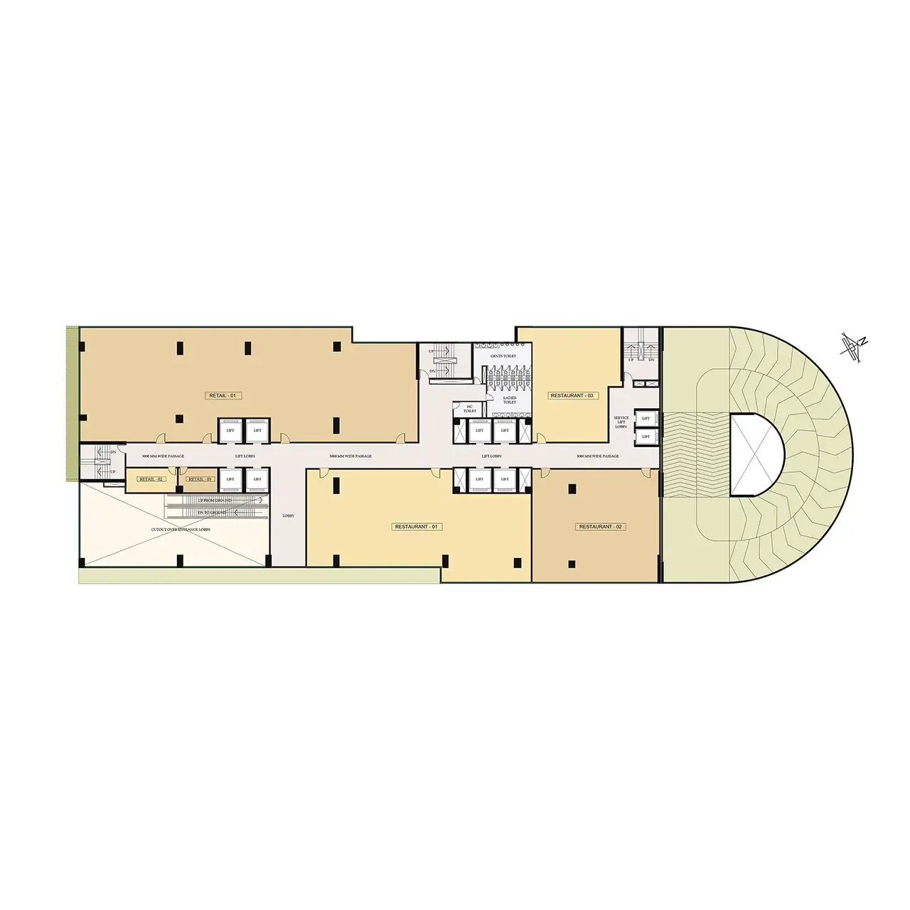 The under-construction commercial space in Salt Lake Sector V features an optimized, smart floor plan and energy-efficient design, aiming for IGBC Platinum-rated green building certification.