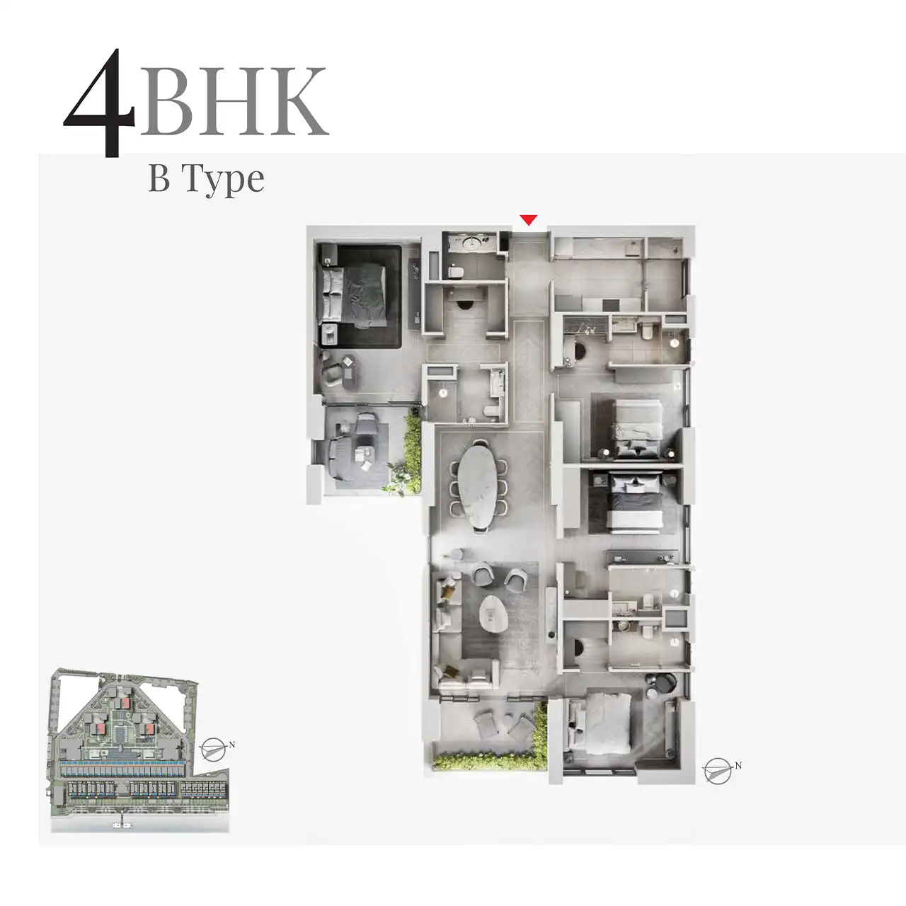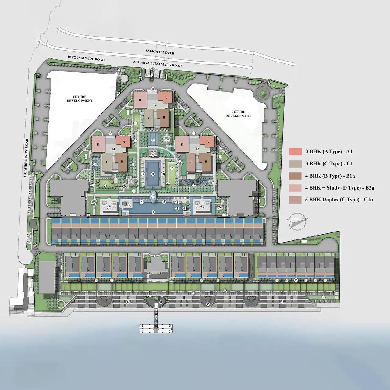 Embrace riverside tranquility and lush greens with world-class sports and leisure. Thoughtfully designed 3, 4 & 5 BHK duplex homes, with super built-up areas from 2525 to 4885 sq. ft, create a self-contained sanctuary for harmonious living.